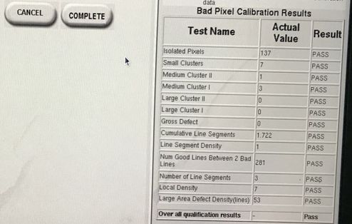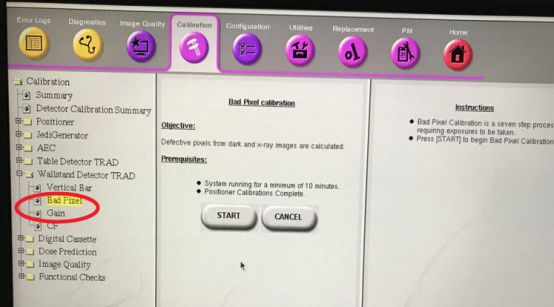 圖像有白點偽影,檢查判斷為探測器成像問題,需要校準