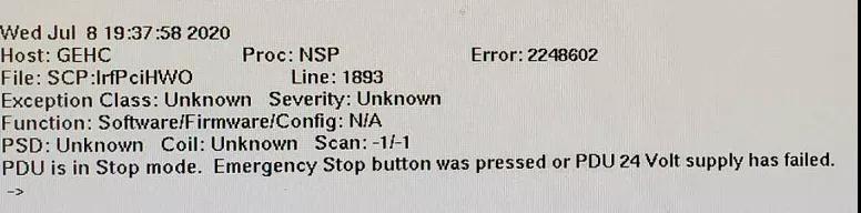 機器無法掃描,報錯PDU is in Stopmode.Emergency Stop button was pressed or PDU 24 Volt supply has failed.