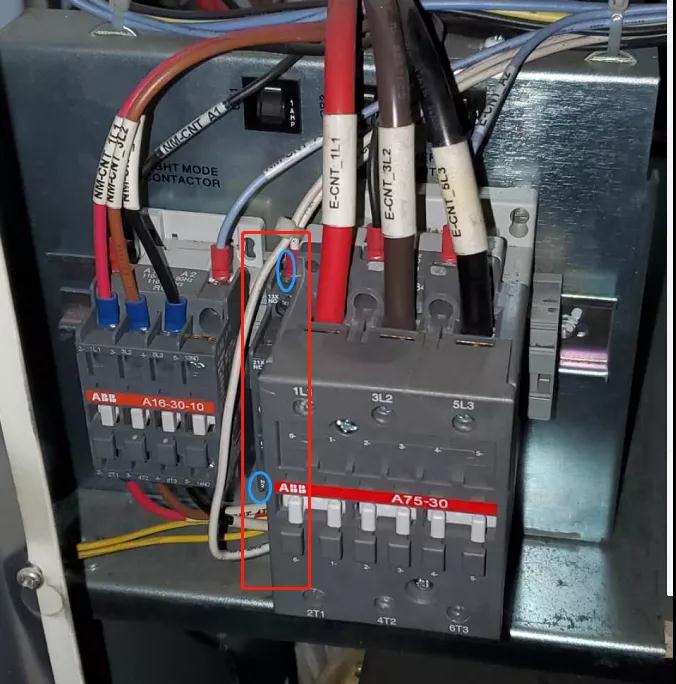 仔細觀察測量發(fā)現(xiàn)CAL5-11交流接觸器有吸合動作,但測13X和14X沒有連接上,對應(yīng)著PDU控制板的E-off contactor_Singnal ,最后將13X和14X短接后,E-STOP回路正常,更換該交流接觸器后,機器恢復(fù)正常。