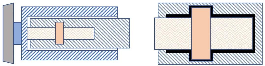 轉(zhuǎn)軸和軸瓦之間會形成一個細小的空腔(如圖2右 黑色部分),這個黑色空腔的表面是能讓液態(tài)金屬浸潤的材料,同時由于間隙極小,易形成毛細效應(yīng),這為液態(tài)金屬的注入降低了工藝難度;在轉(zhuǎn)軸和軸瓦脫離的界面上,又通過鍍敷抗液態(tài)金屬浸潤的材料,形成對液態(tài)金屬的鎖止,防止液態(tài)金屬漏入真空而降低球管耐壓強度。