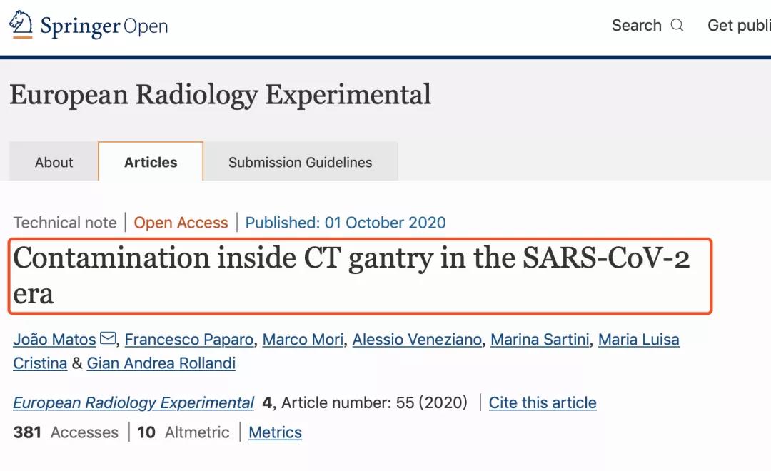 日前,據(jù)外網(wǎng)Springer Open(包含多學(xué)科領(lǐng)域期刊的內(nèi)容平臺(tái))消息,意大利研究人員在CT的內(nèi)部發(fā)現(xiàn)新冠病毒,醫(yī)務(wù)工作者稱,在內(nèi)部組件中找到了病毒痕跡,目前該判斷已經(jīng)發(fā)表在科學(xué)雜志上。