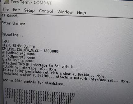 發(fā)現(xiàn)RTM板參數(shù)丟失,調(diào)試選擇3)Modify Bootline重新配置RTM板參數(shù)。按重建柜內(nèi)另外一塊RTM板的參數(shù)進(jìn)行配置