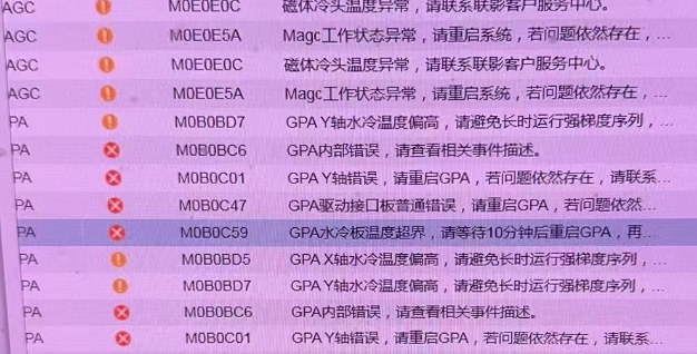 故障發(fā)生當日,MR 設備在掃描過程中突然發(fā)出警報,屏幕提示機器無法繼續(xù)掃描,報錯信息直指梯度高溫。這一故障的出現(xiàn),不僅中斷了正在進行的檢查,更可能導致后續(xù)患者預約的延誤,因此必須迅速排查并解決問題。