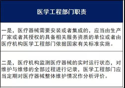 而在此次二級(jí)以上醫(yī)院器械管理委員會(huì)中承擔(dān)主要任務(wù)的就是醫(yī)學(xué)工程部門(mén)?!掇k法》規(guī)定,二級(jí)以上醫(yī)院的醫(yī)學(xué)工程部門(mén)應(yīng)當(dāng)配備與功能、任務(wù)、規(guī)模相適應(yīng)的醫(yī)學(xué)工程及其他專(zhuān)業(yè)技術(shù)人員、設(shè)備和設(shè)施。